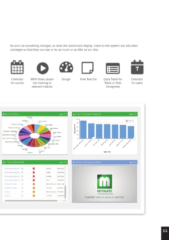 Calendar MP4 Video player Gauge Free Text tile Data Table for Calendar